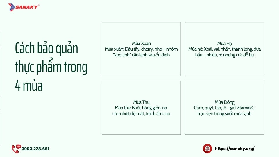 • Nhiệt độ lý tưởng: 2–4°C cho dâu tây, cherry; 4–6°C cho nho, táo, lê.